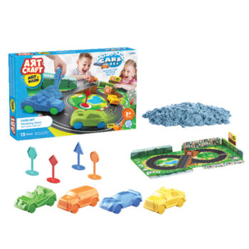 The Art Craft Cars Set Modeling Sand 750 GR offers an engaging and creative experience for kids. This set allows children to build their own cars using kinetic play sand, fostering their imagination and creativity. Ideal for young minds, the set encourages them to design and mold vehicles in any shape they desire, creating endless possibilities for play.