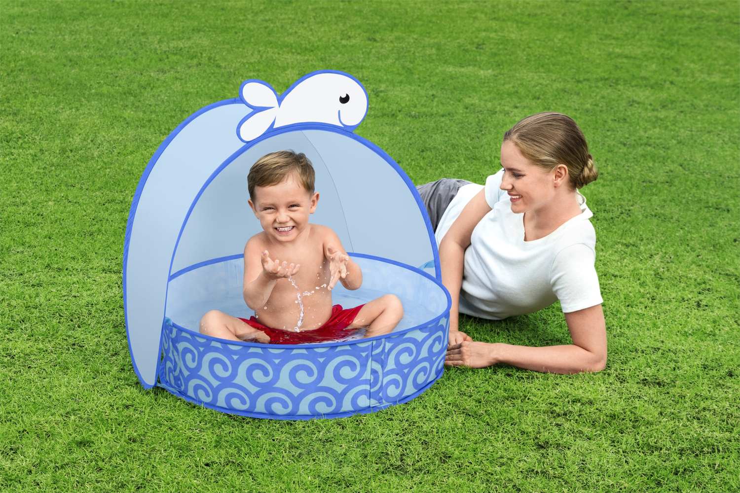 Get your kids ready for fun in a flash with the Bestway? Pop-Up n’ Splash? Baby Pool! Designed for toddlers ages 12 months and older, the Pop-Up n’ Splash Baby Pool features a whimsical water pattern, and the pop-up structure allows the pool to be set up in just one minute! It also comes with a UV Careful? detachable sunshade to keep your little one safe from the sun’s rays as they splash and play.