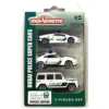 3-piece Dubai Police car set by Majorette. Includes die-cast models for collection or play.