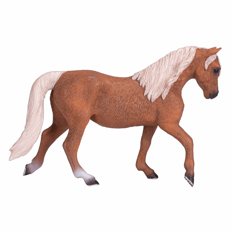 Design: Features a realistic walking pose with intricate details, showcasing the stallion’s golden palomino coat, white mane and tail, muscular build, and well-arched neck.