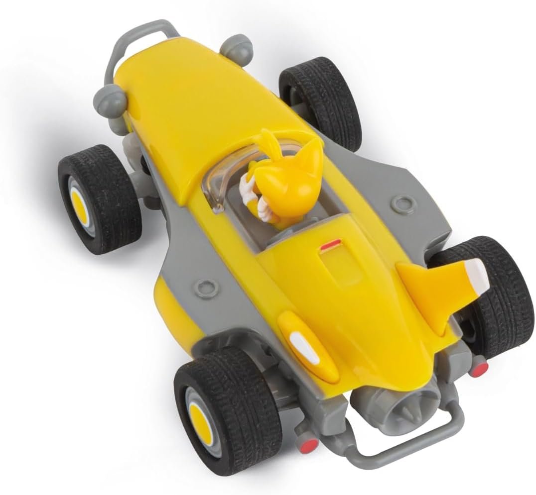 Zoom into action with Tails in this Mini RC Sonic Racing car. Compact, colorful, and built for fun. • Includes remote control and car • Features Tails in signature kart • Compact 1:43 scale • Simple controls for kids • Best for ages 5–8