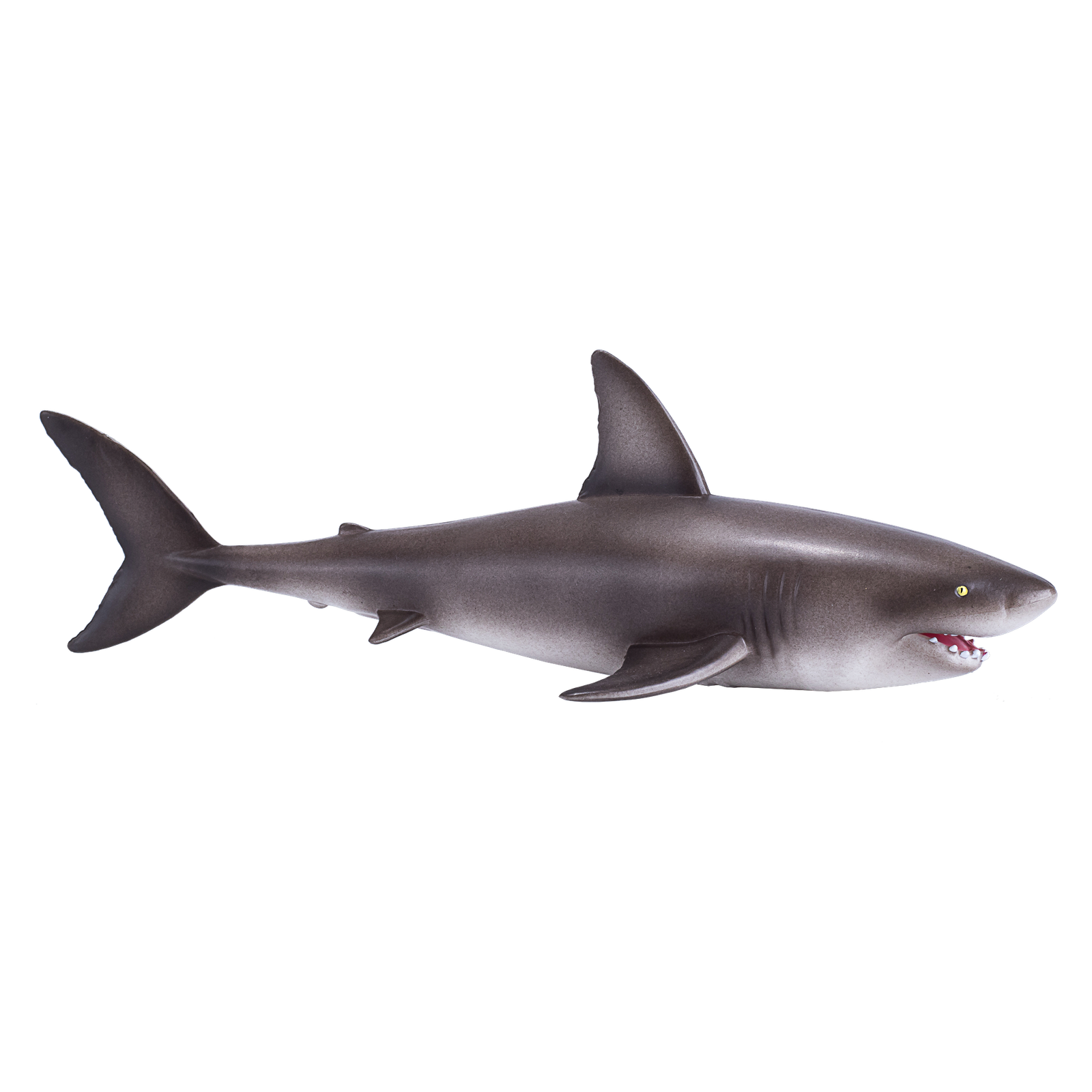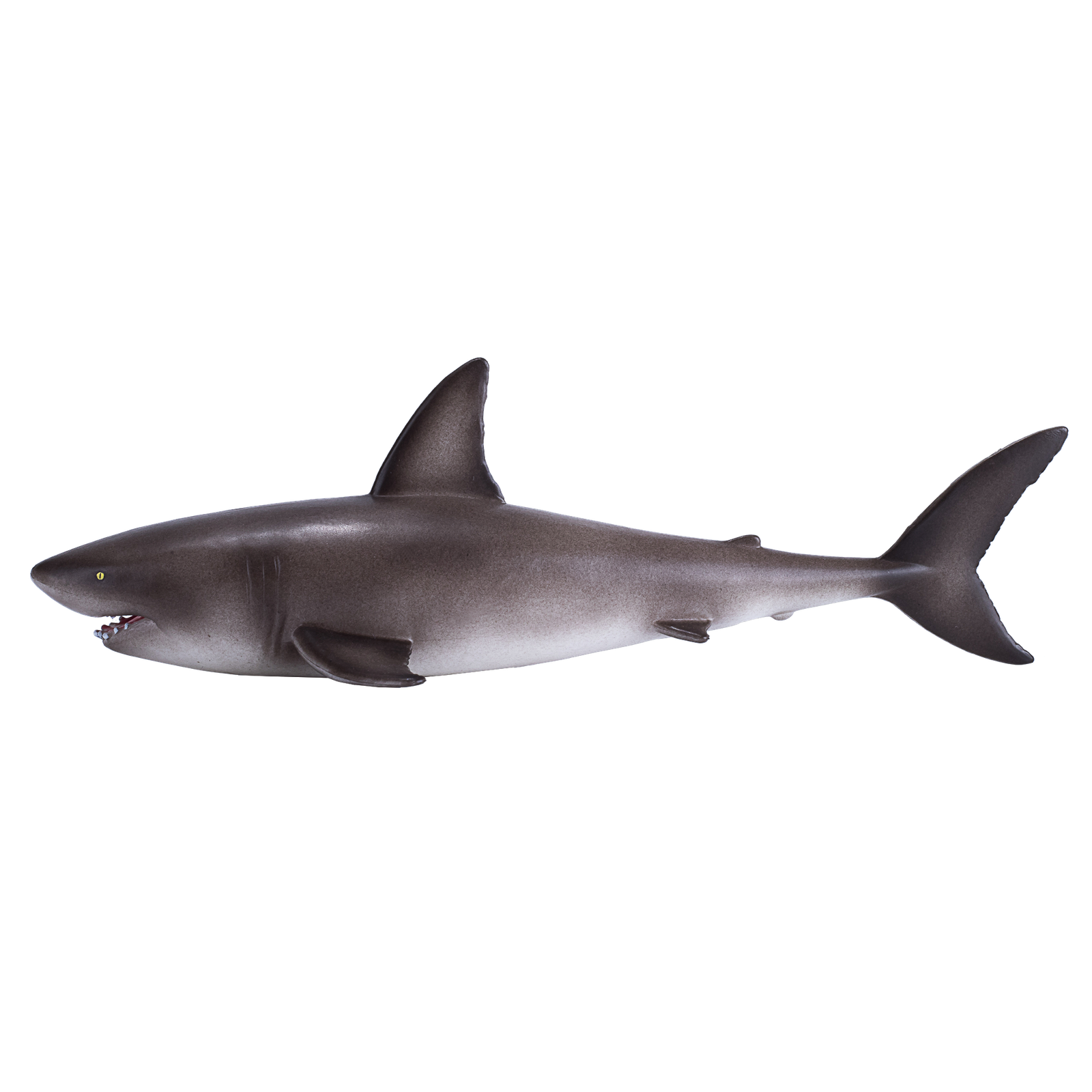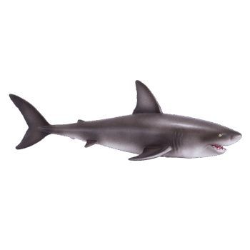 Design: Features a realistic depiction of a great white shark, showcasing its robust, torpedo-shaped body, conical snout, and serrated teeth. The figure is painted with precise colors, featuring the iconic stark white underbelly and a contrasting grey upper body, exemplifying the species’ counter-shading adaptation for camouflage.