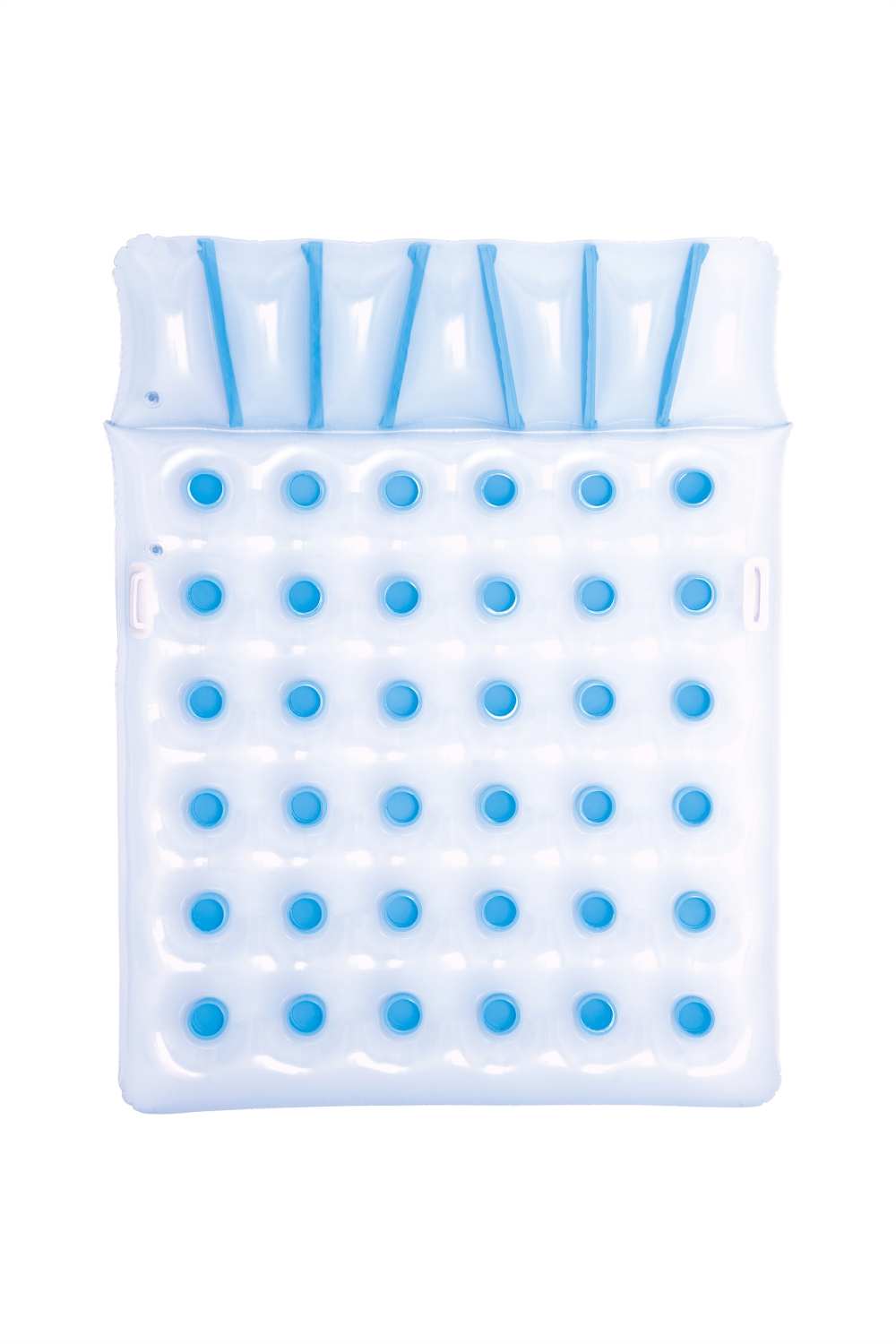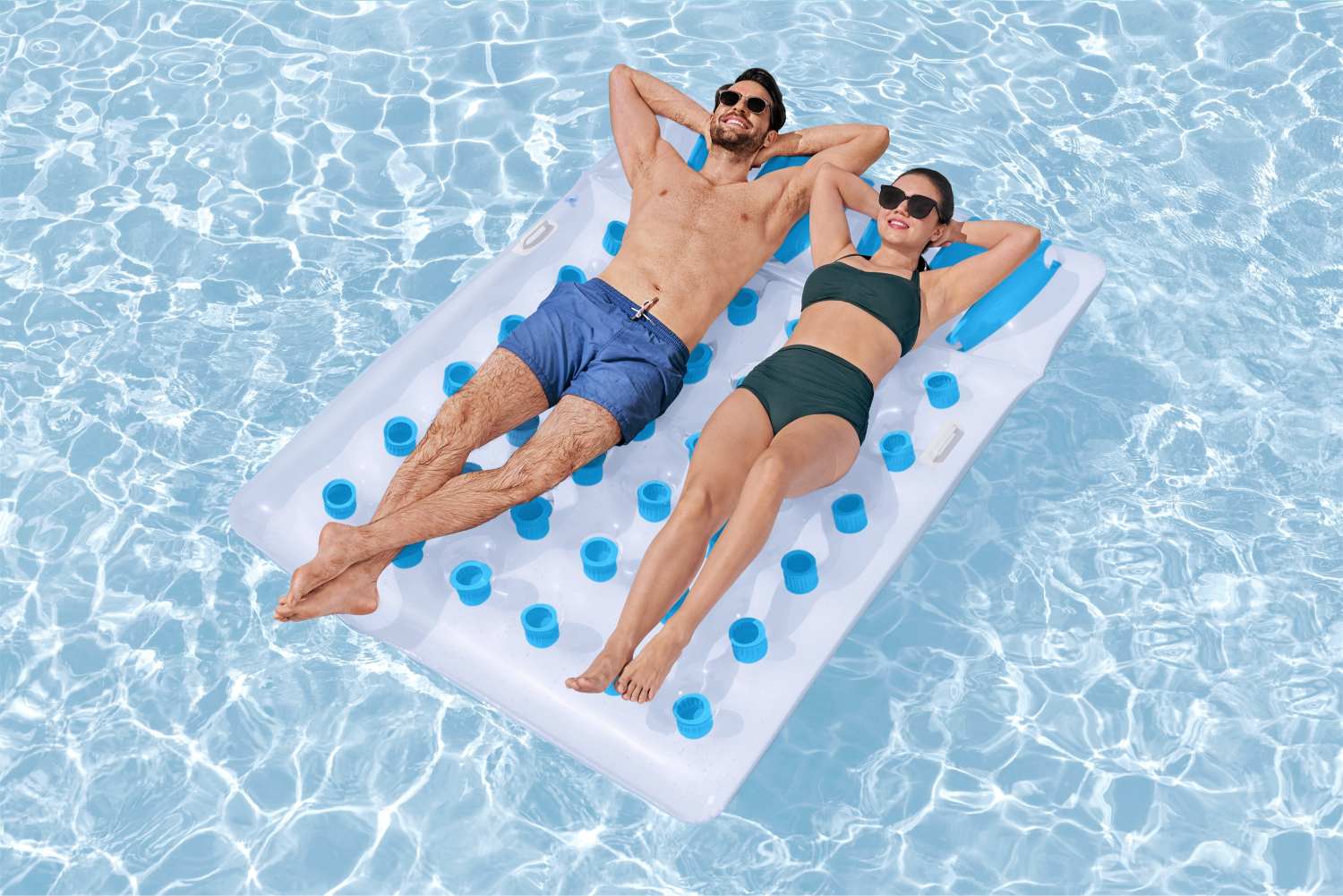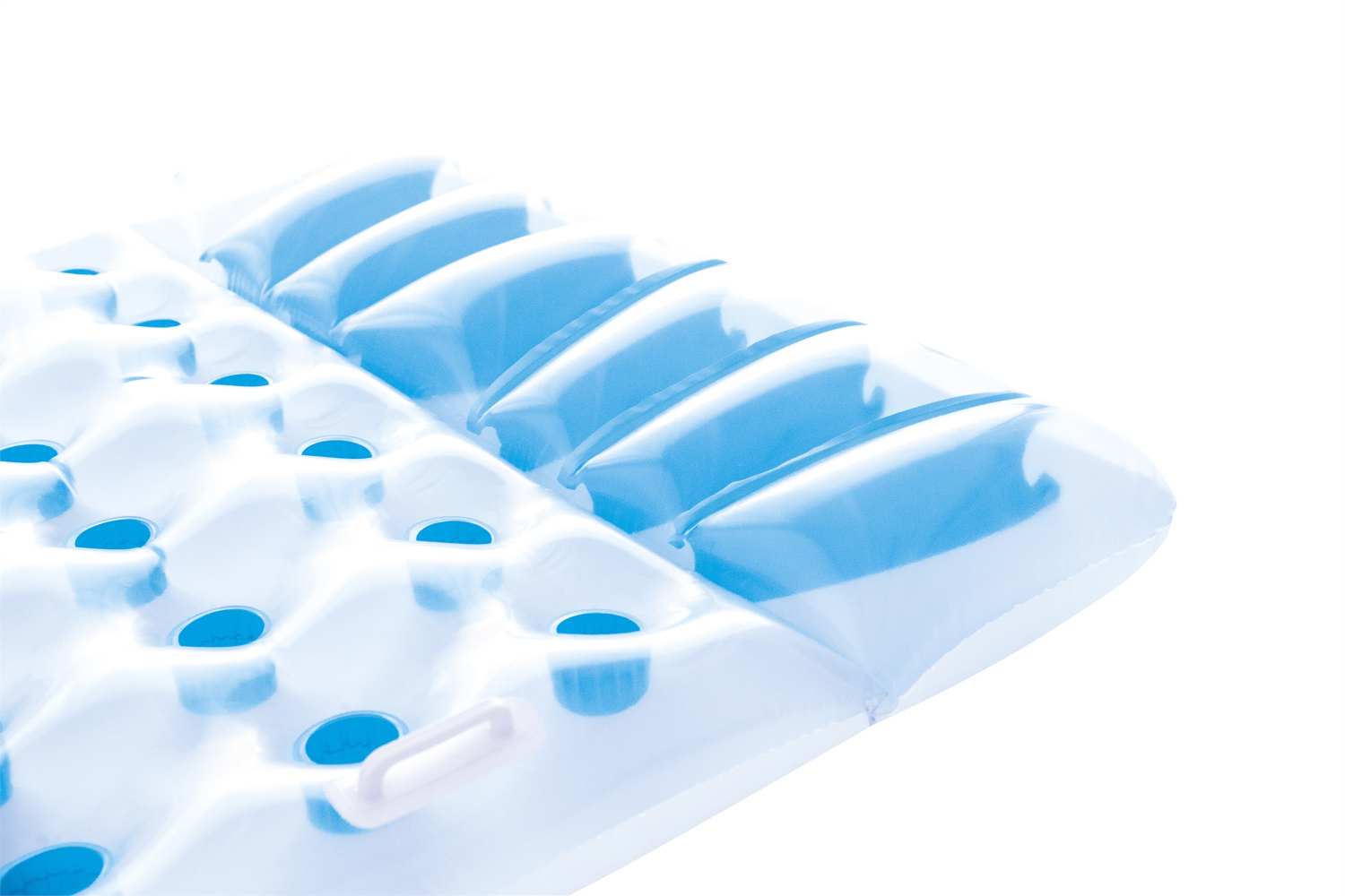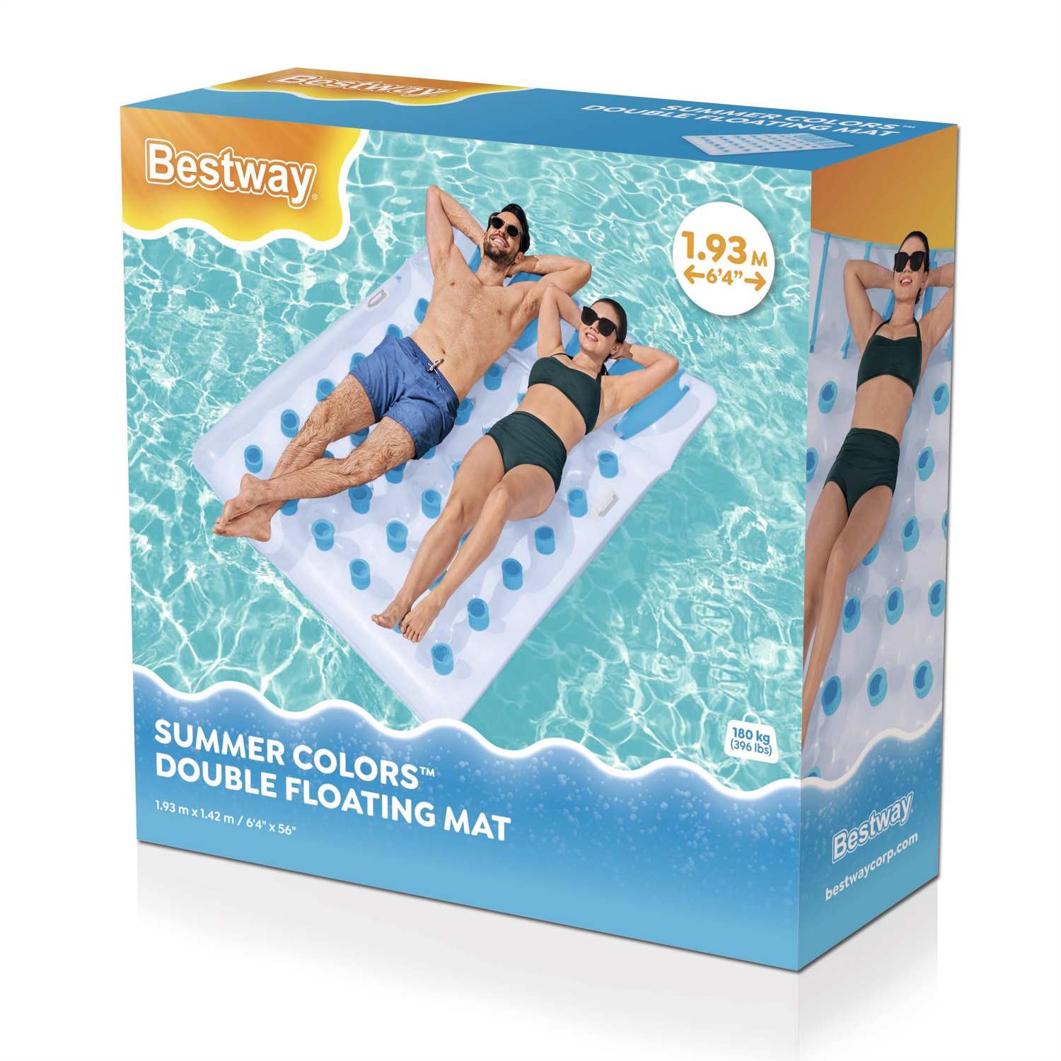 Hit the pool or beach with the trendy and fun Bestway? Summer Colors? Double Floating Pool Mat. Grab a friend on this room-for-2 pool float and enjoy a catch up as you float on the sturdy mat. Featuring a transparent top with a brightly colored, 36-pocket inner coil beam construction for support and buoyancy, the unique design also provides cooling and comfort so you can stay on the float for hours. The pool mat includes a built-in I-beam pillow so you can lounge in ultimate comfort. Plus, it’s the perfect length for stretching out and taking a nap. Relaxing in the sun has never been more fun than with the Bestway Summer Colors Double Floating Pool Mat!