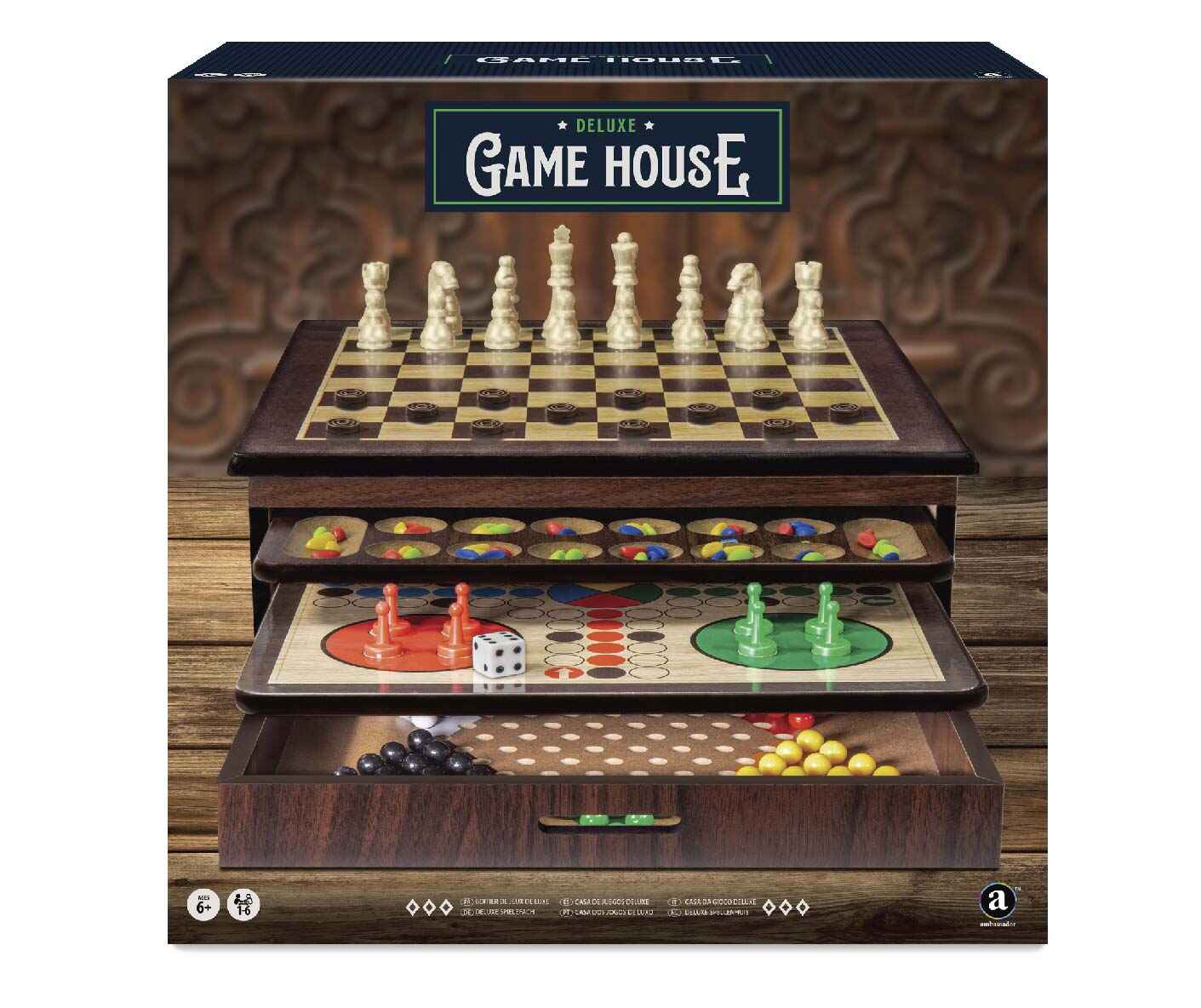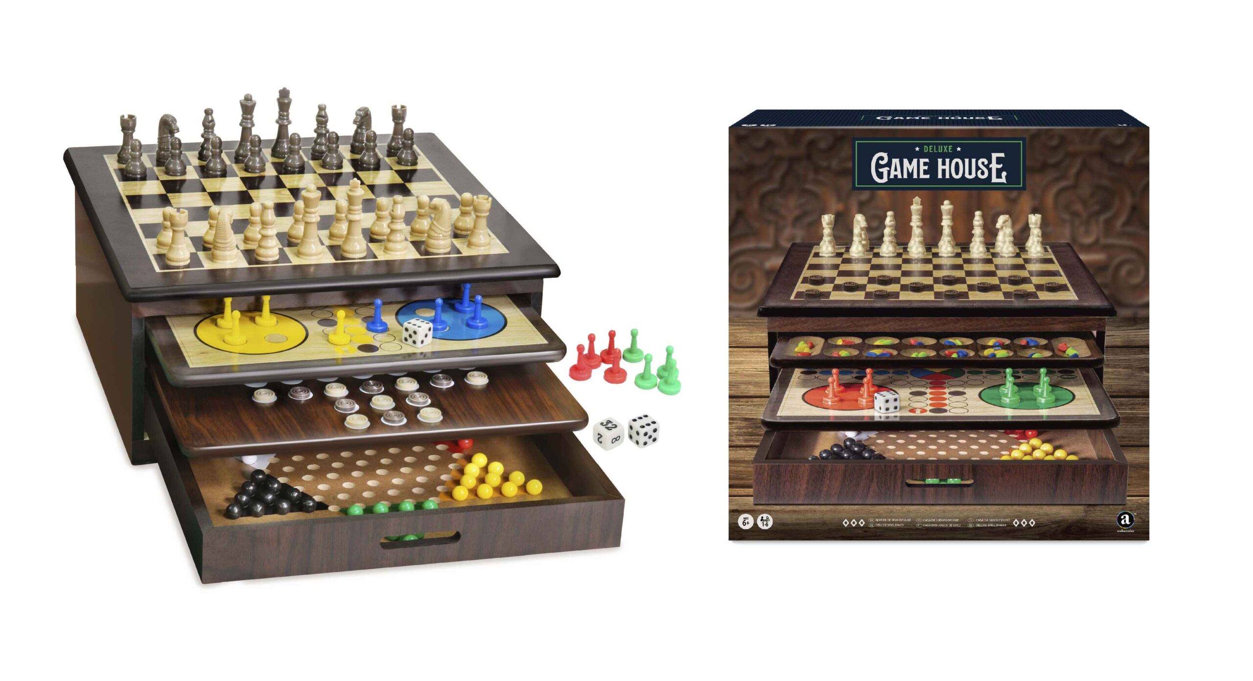 The Craftsman Deluxe Wooden Game House is a premium collection that brings together 10 classic board games in a beautifully crafted wooden case. Designed for players aged 6 and above, it offers timeless entertainment for family gatherings, game nights, or casual play.​