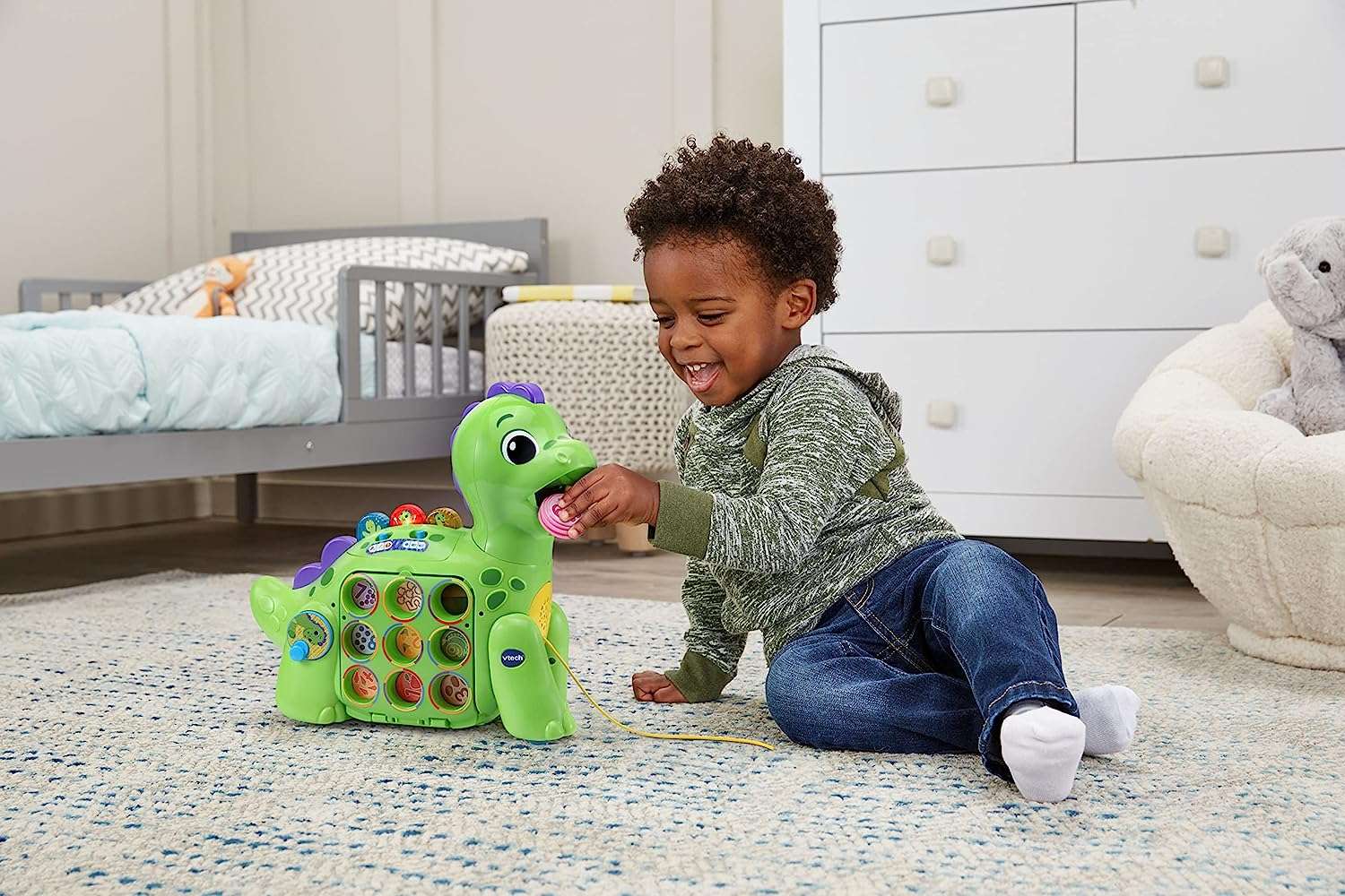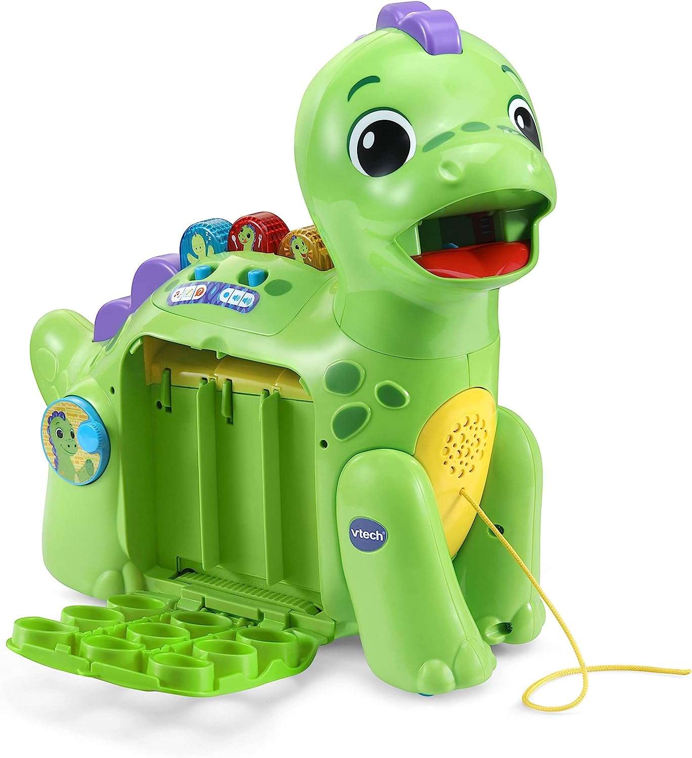 Introduce your toddler to a world of learning and fun with the Chomp-Along Dino! This interactive dinosaur toy engages children in educational play, teaching numbers, colors, and healthy foods. With its vibrant design and playful features, it’s the perfect companion for your child’s early development.