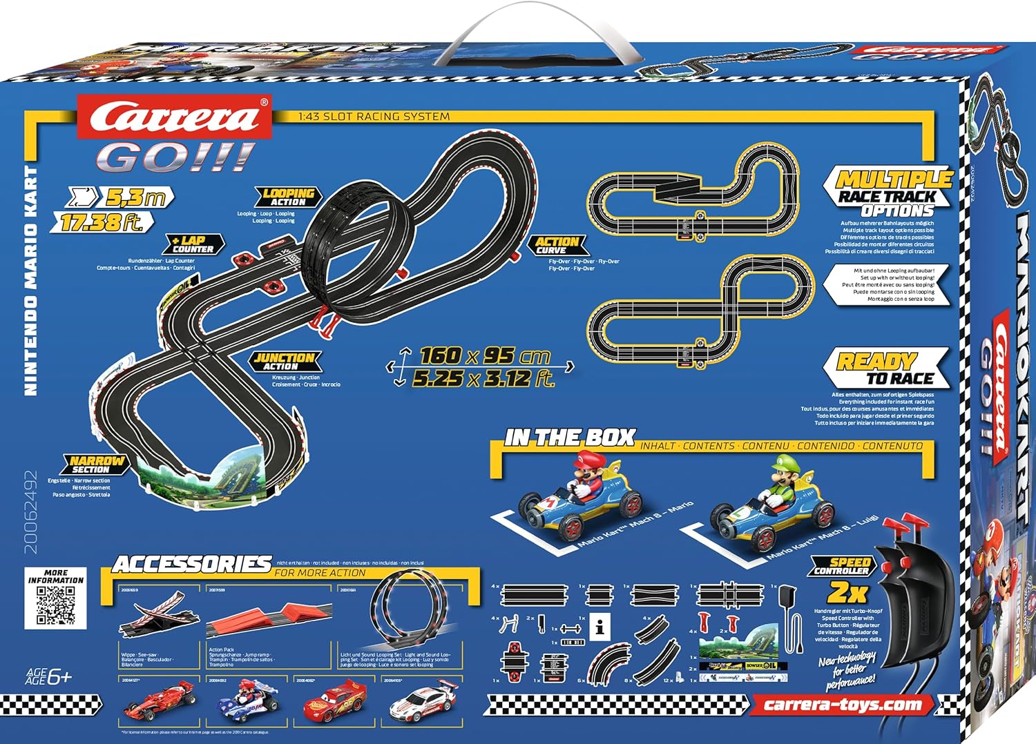 5.3m Mach 8 racing set with Mario Kart theme. High-speed racing excitement.