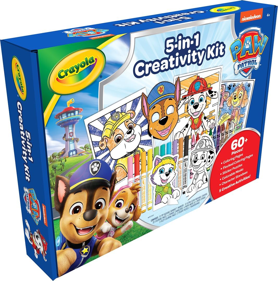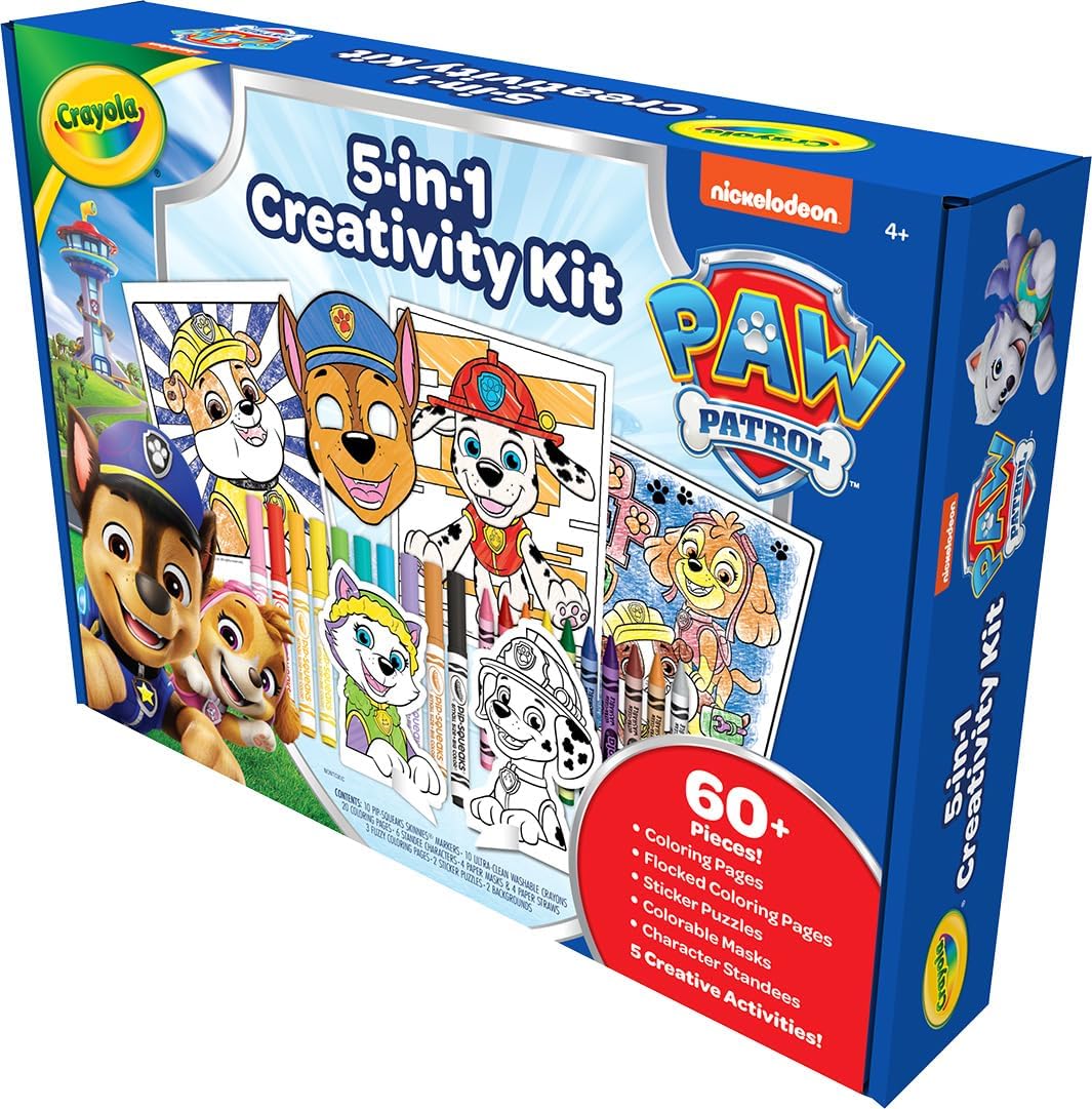 PAW PATROL ACTIVITY KIT: Includes 15 Coloring Pages, 3 Fuzzy Coloring Pages, 2 Colorable Sticker Puzzle Sheets, 2 Color and Build Backgrounds, 2 Color and Build Characters, 10 Pips Skinnies Markers, 10 Washable Crayons, and 1 Instruction Sheet.