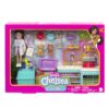 - Water Play: Use icy cold and warm water to reveal Barbie doll’s face transformation and open and close the mini pet’s eyes.